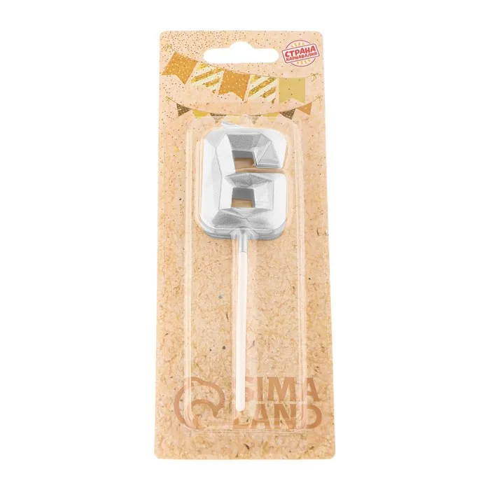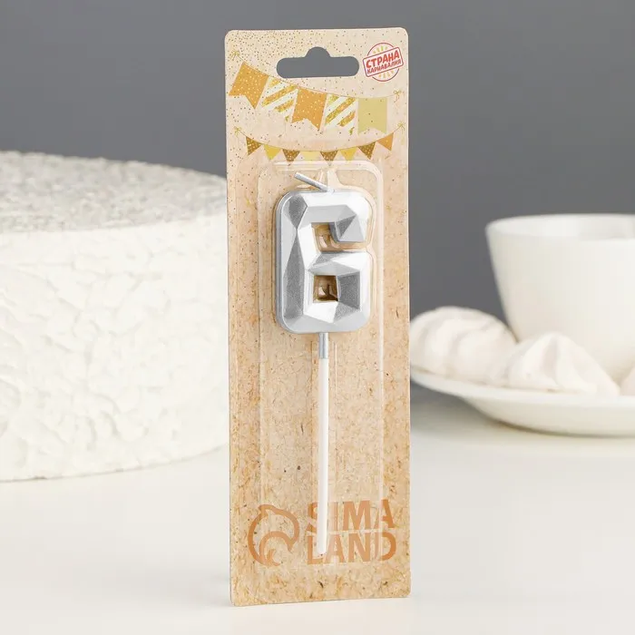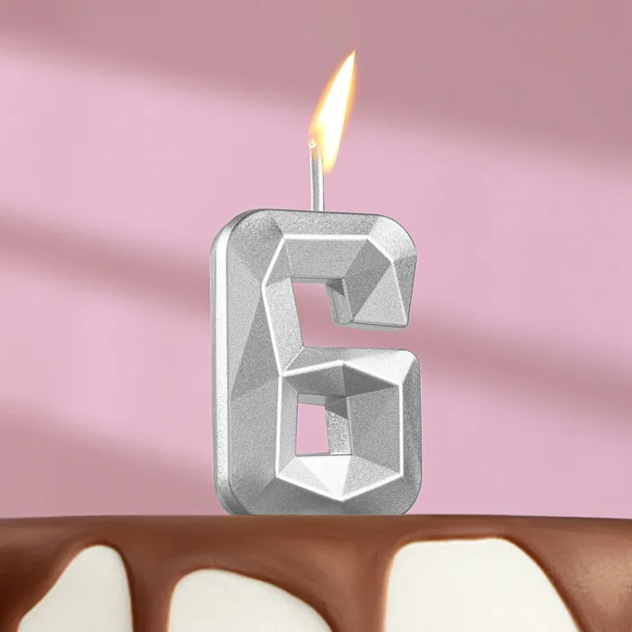 Свеча в торт на шпажке «Алмаз», цифра 6, серебряная, 5×2.6 см — Характеристики