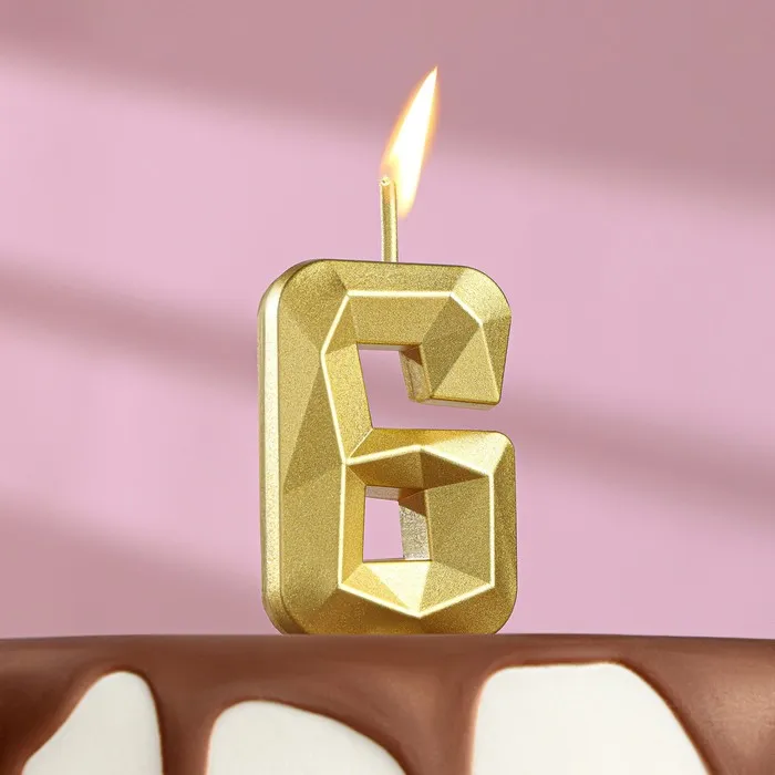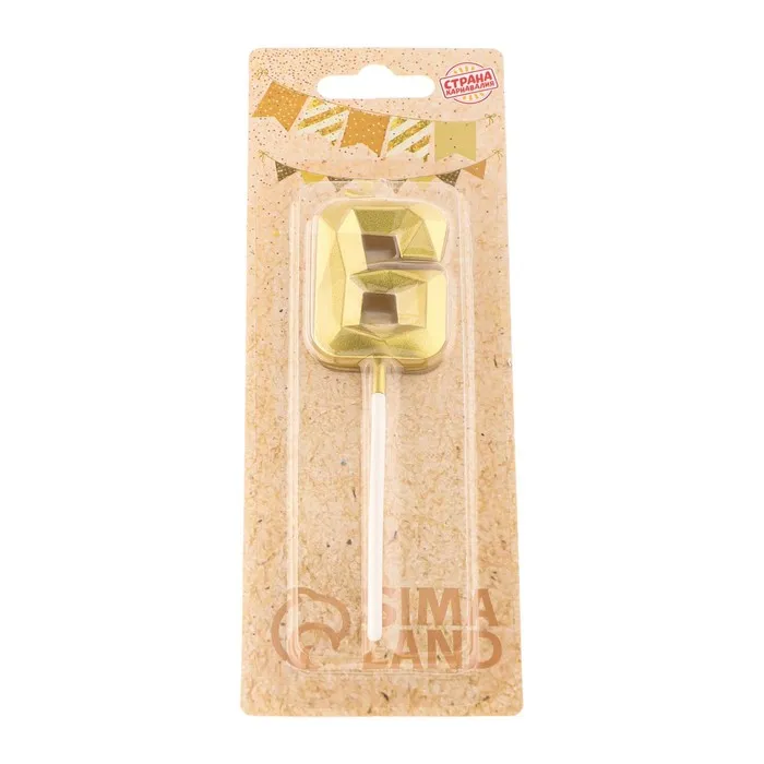 Свеча в торт на шпажке «Алмаз», цифра 6, золотая, 5 см — Характеристики