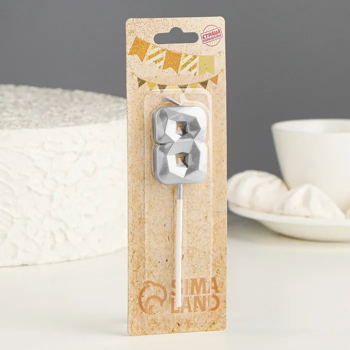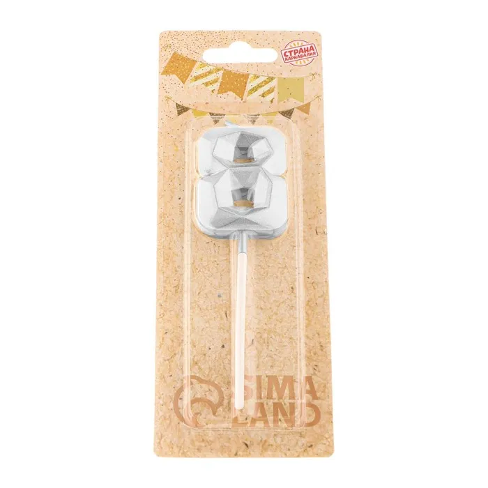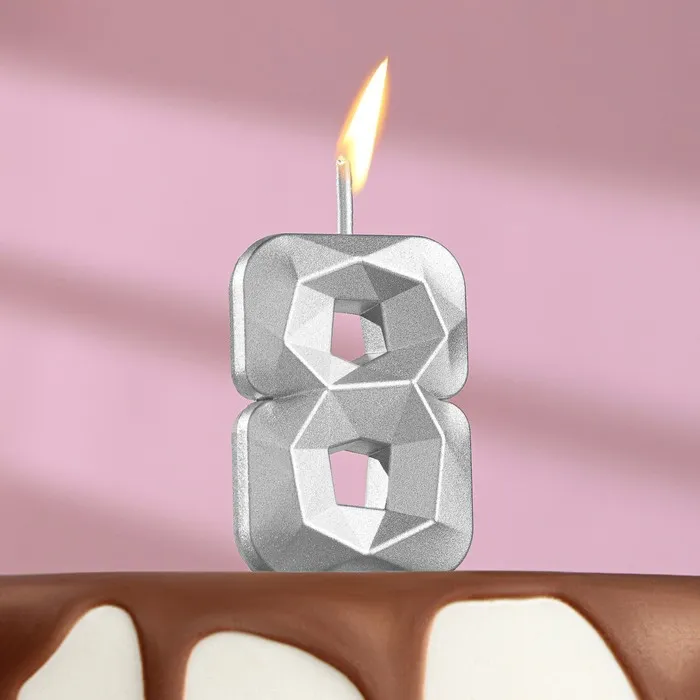 Свеча в торт на шпажке «Алмаз», цифра 8, серебряная, 5×2.6 см — Характеристики