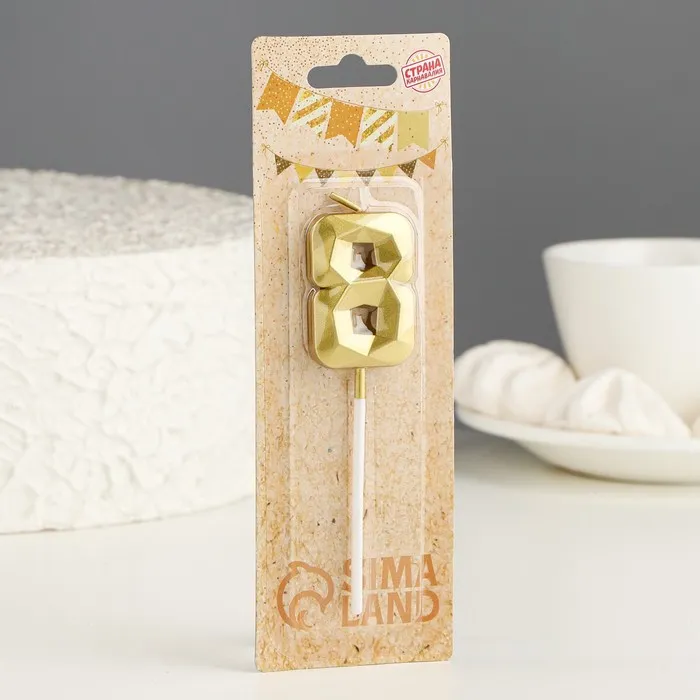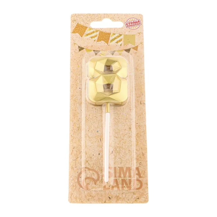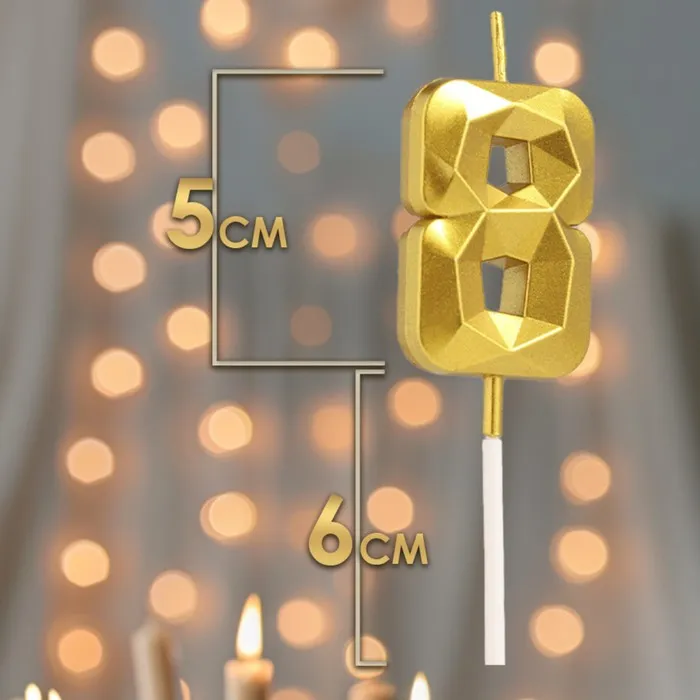 Свеча в торт на шпажке «Алмаз», цифра 8, золотая, 5 см — Характеристики