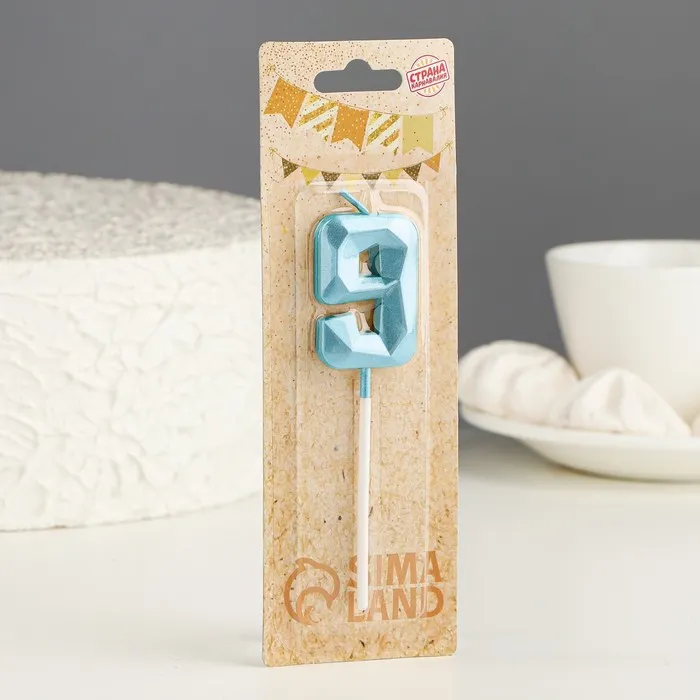 Свеча в торт на шпажке «Алмаз», цифра 9, голубая, 5 см — Характеристики