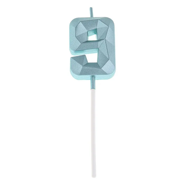 Свеча в торт на шпажке «Алмаз», цифра 9, голубая, 5 см