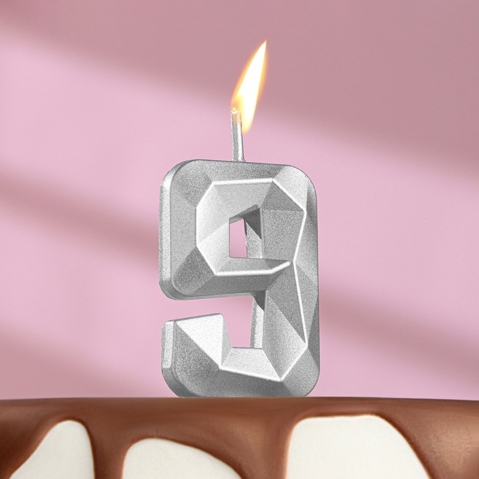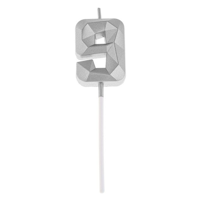 Свеча в торт на шпажке «Алмаз», цифра 9, серебряная, 5×2.6 см