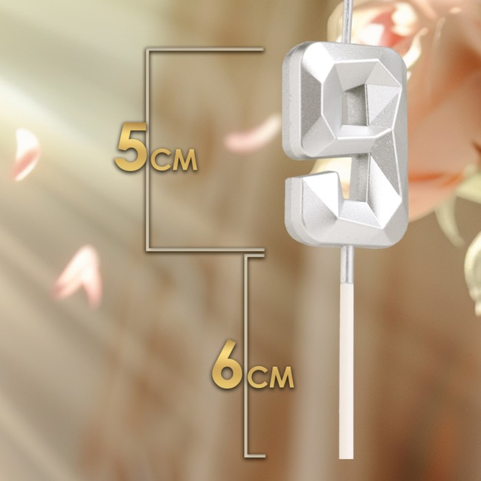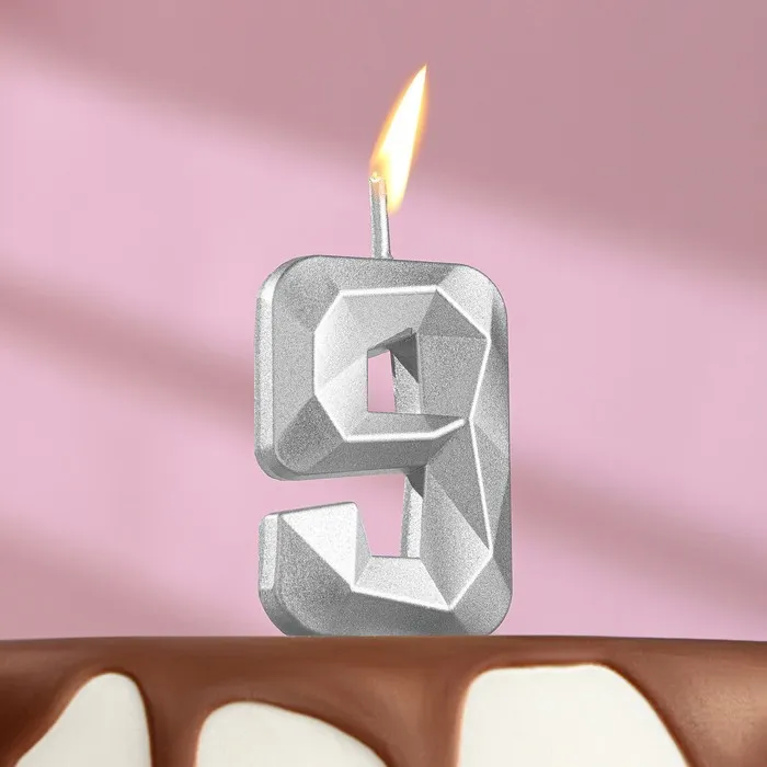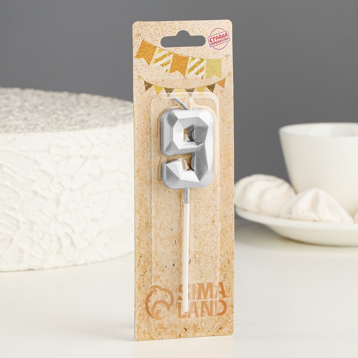 Свеча в торт на шпажке «Алмаз», цифра 9, серебряная, 5×2.6 см — Характеристики