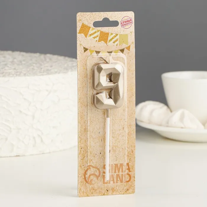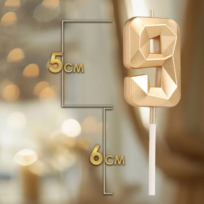 Свеча в торт на шпажке «Алмаз», цифра 9, шампань, 5×2.6 см — Характеристики
