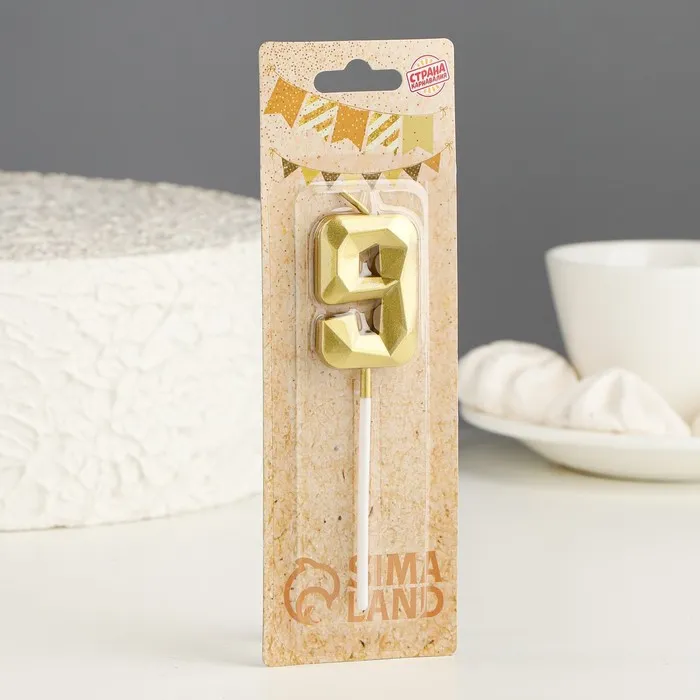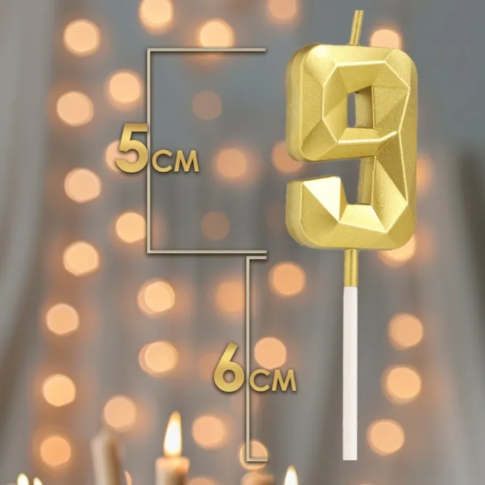 Свеча в торт на шпажке «Алмаз», цифра 9, золотая, 5 см — Характеристики