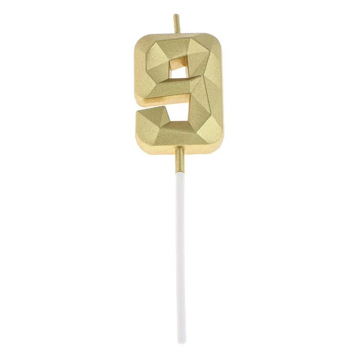 Свеча в торт на шпажке «Алмаз», цифра 9, золотая, 5 см