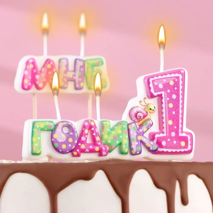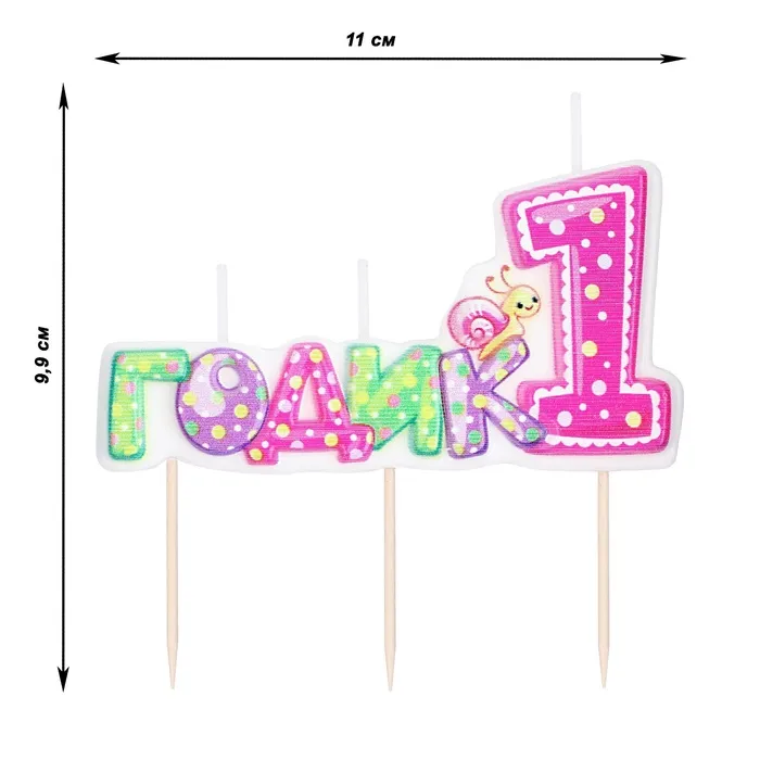 Свеча в торт на шпажке для девочек «Мне годик», 7.7 см, 12 мин, 65 г — Характеристики