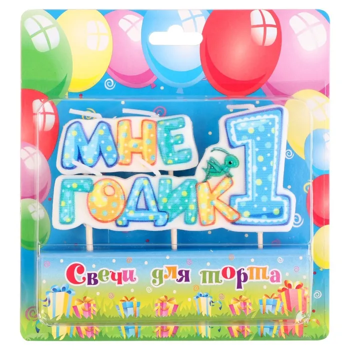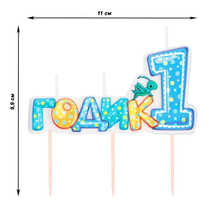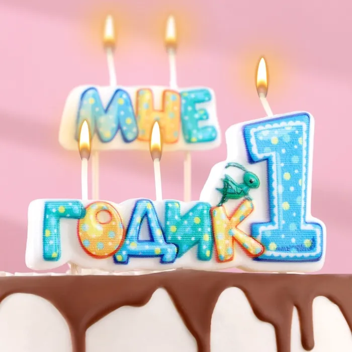 Свеча в торт на шпажке для мальчиков «Мне годик», 7.7 см, 12 мин, 65 г — Характеристики