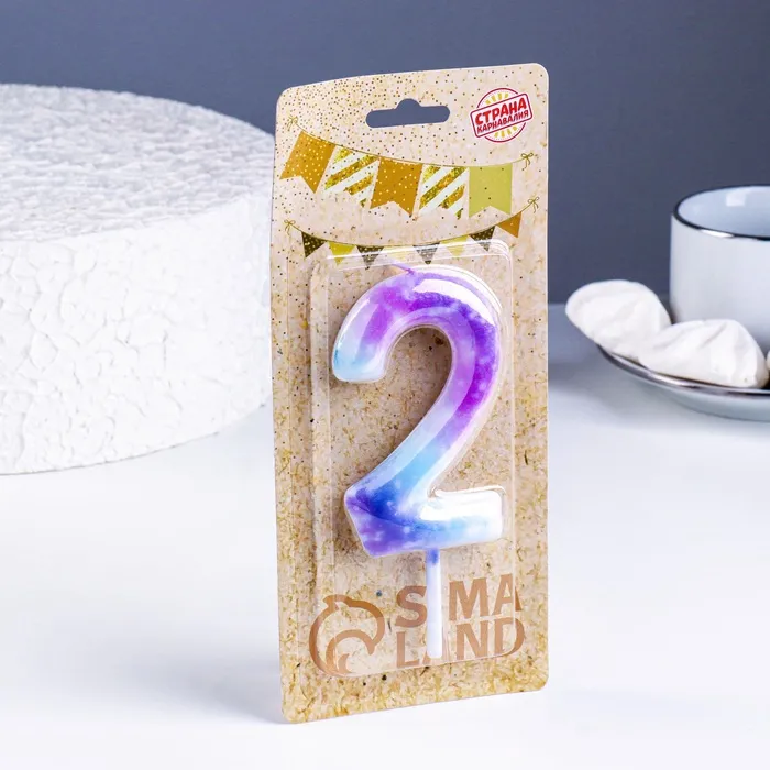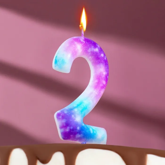 Свеча в торт на шпажке «Галактика», цифра 2, 9 см, ГИГАНТ