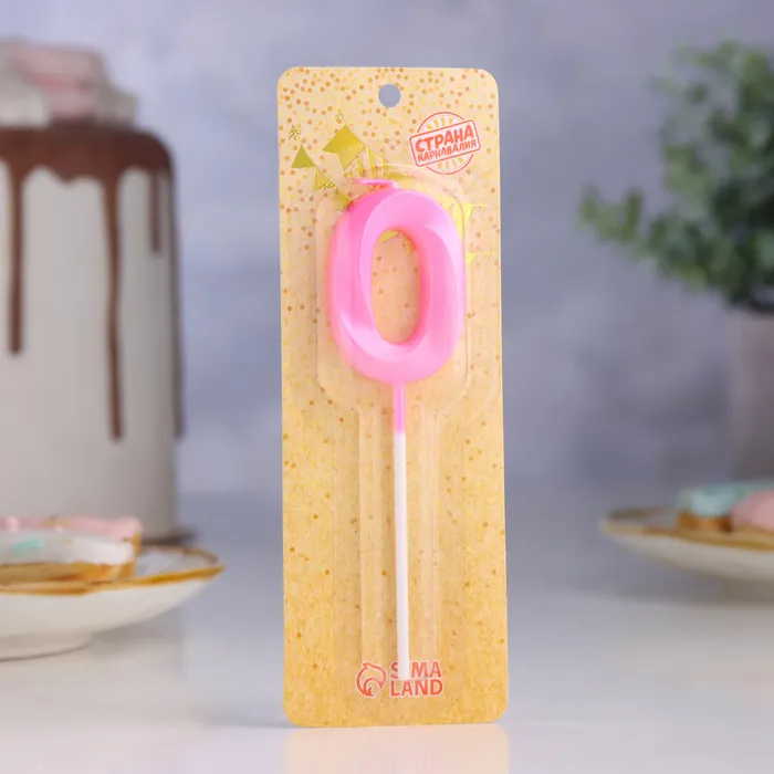 Свеча в торт на шпажке «Грань», цифра 0, 5 см, розовая — Характеристики