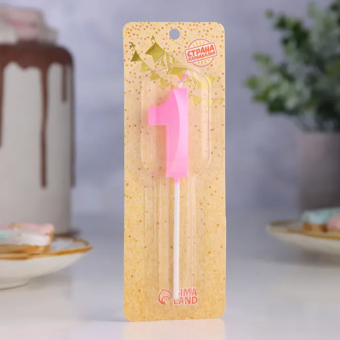 Свеча в торт на шпажке «Грань», цифра 1, 5 см, розовая — Характеристики