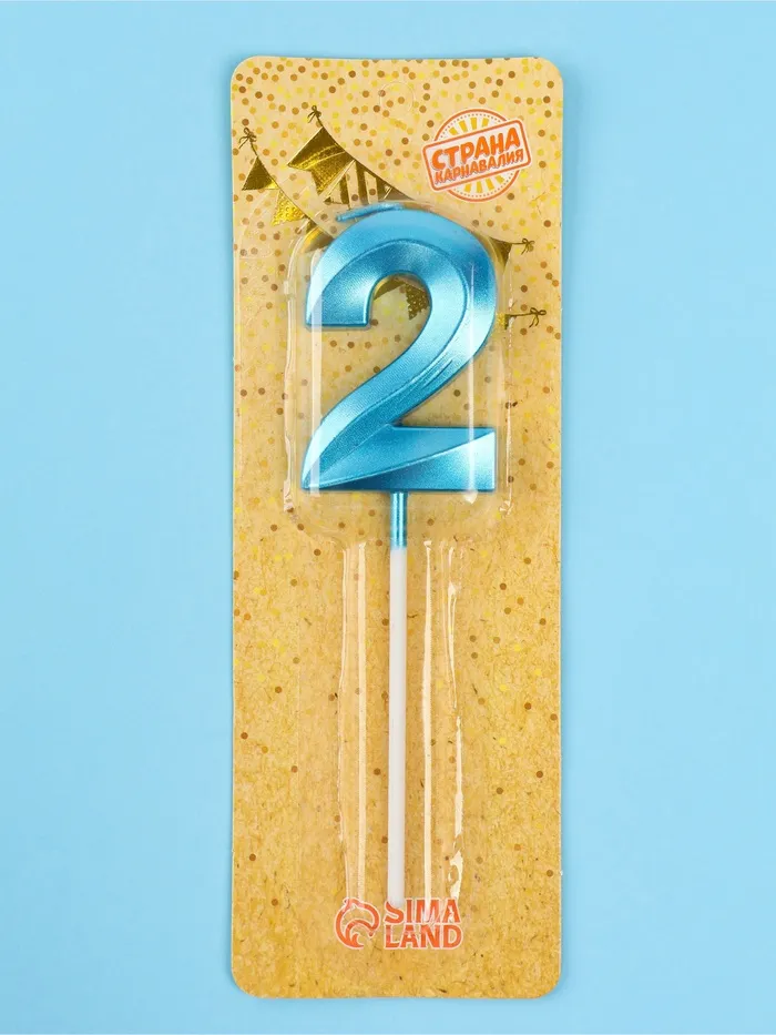 Свеча в торт на шпажке «Грань», цифра 2, голубая, 5 см — Характеристики