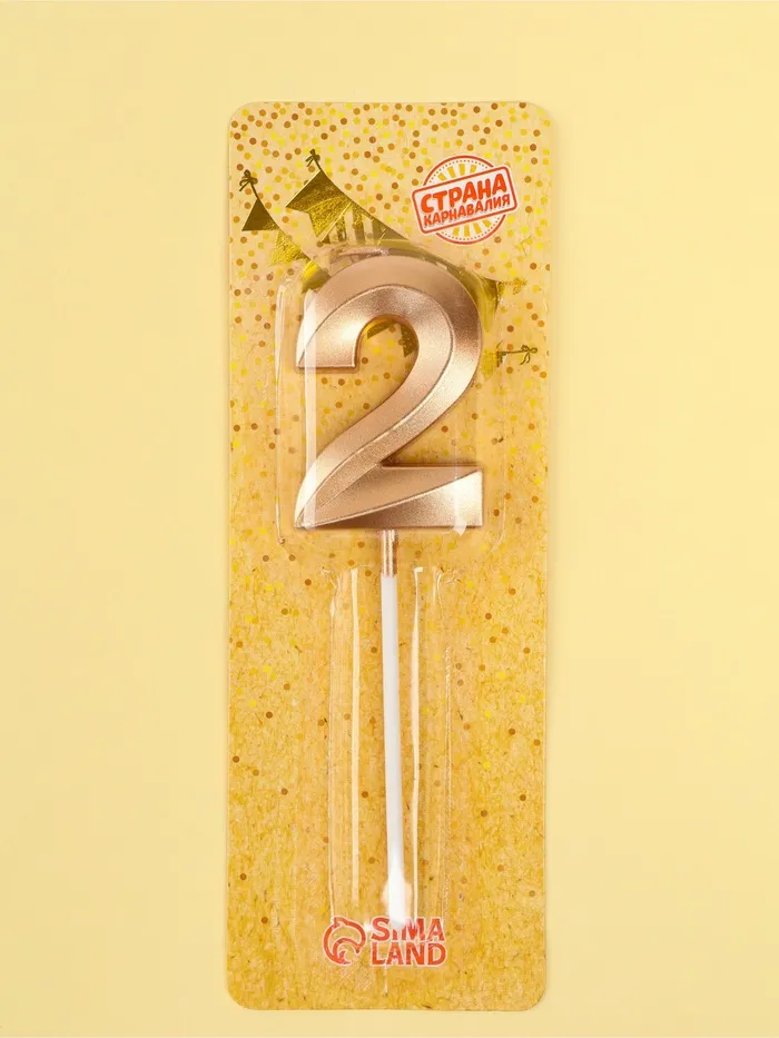 Свеча в торт на шпажке «Грань», цифра 2, шампань, 5 см — Характеристики