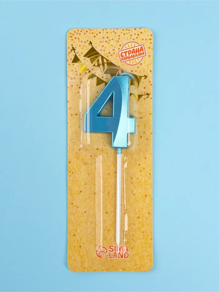 Свеча в торт на шпажке «Грань», цифра 4, голубая, 5 см — Характеристики