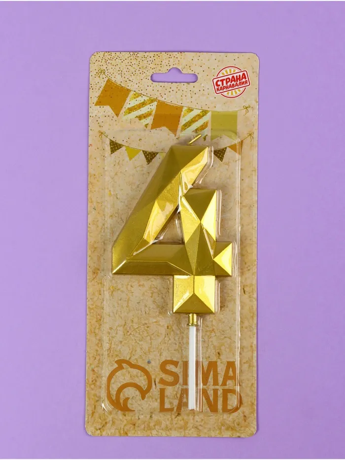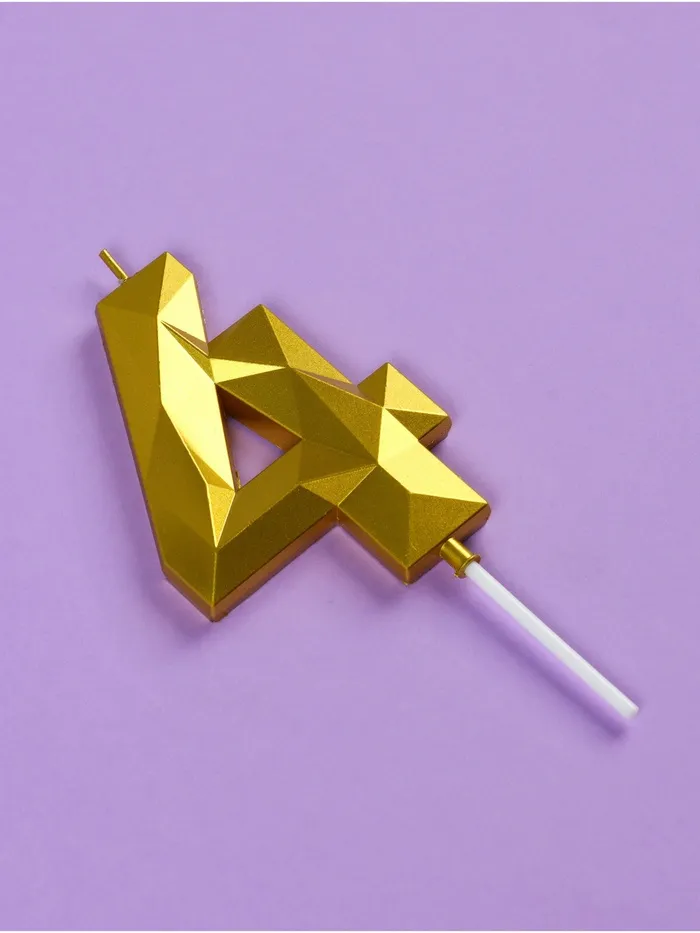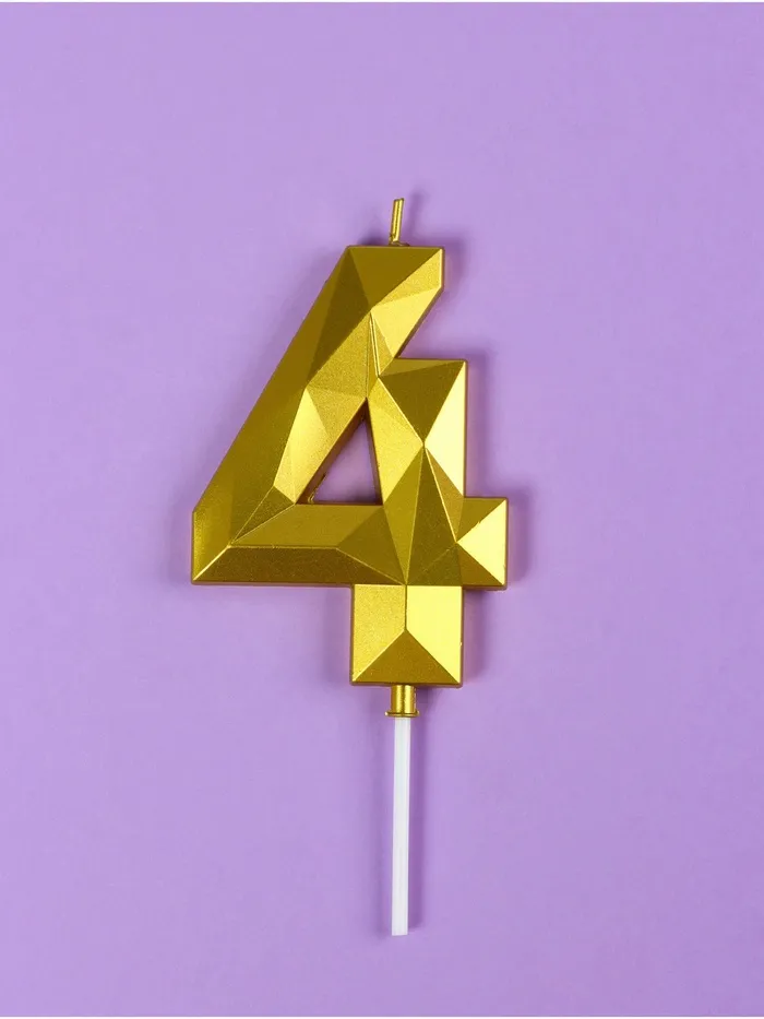 Свеча в торт на шпажке «Грань», цифра 4, золотая, 9 см, ГИГАНТ — Характеристики