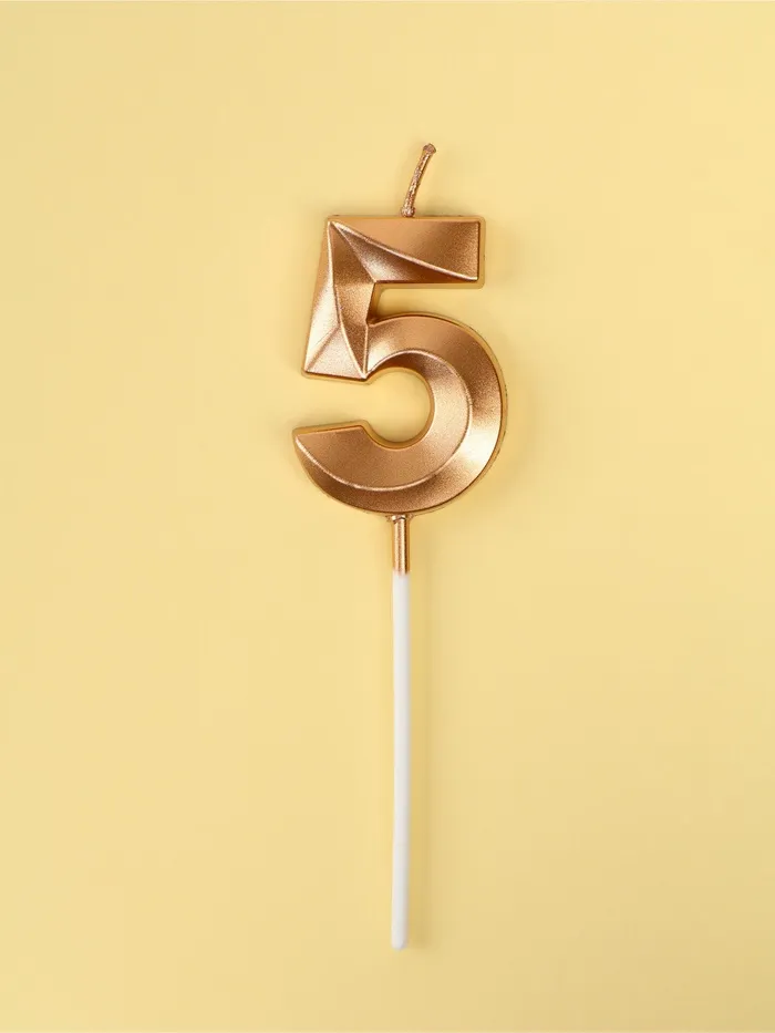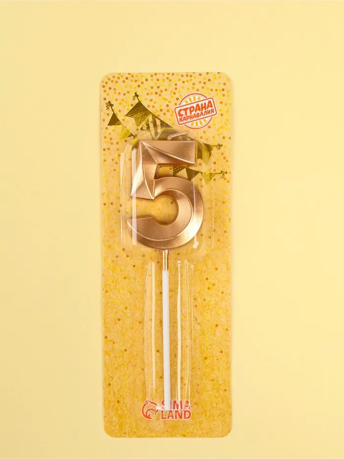 Свеча в торт на шпажке «Грань», цифра 5, шампань, 5 см — Характеристики