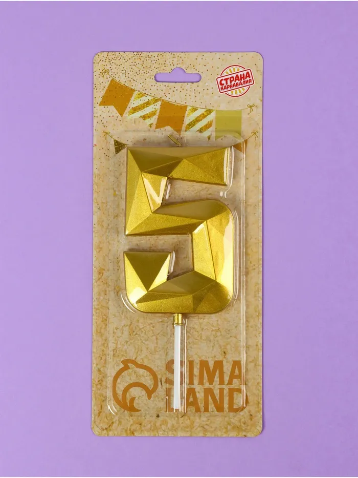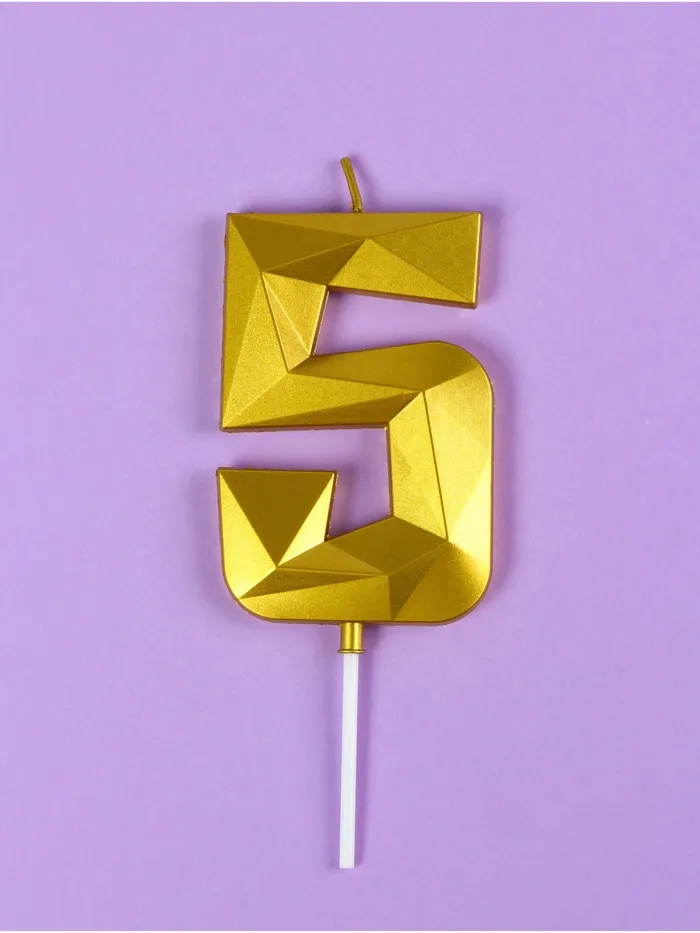 Свеча в торт на шпажке «Грань», цифра 5, золотая, 9 см, ГИГАНТ — Характеристики