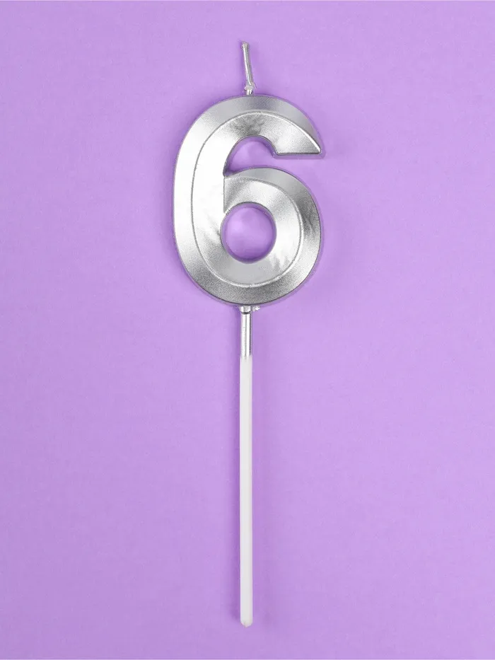 Свеча в торт на шпажке «Грань», цифра 6, серебро, 5 см