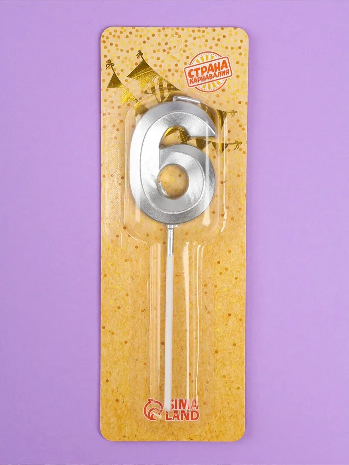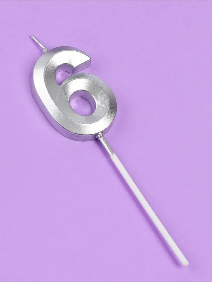 Свеча в торт на шпажке «Грань», цифра 6, серебро, 5 см — Характеристики