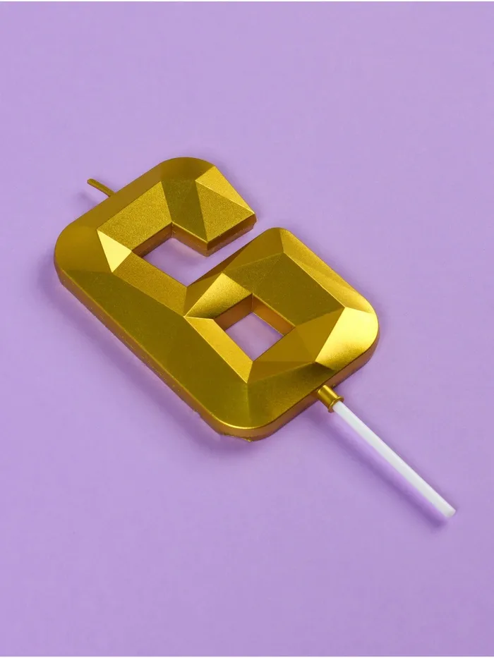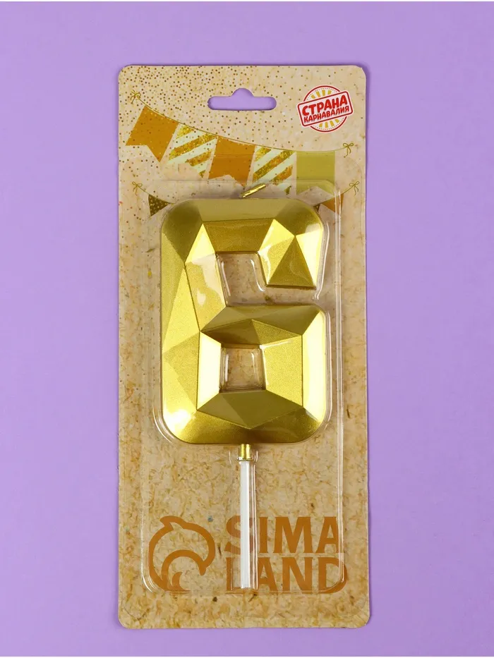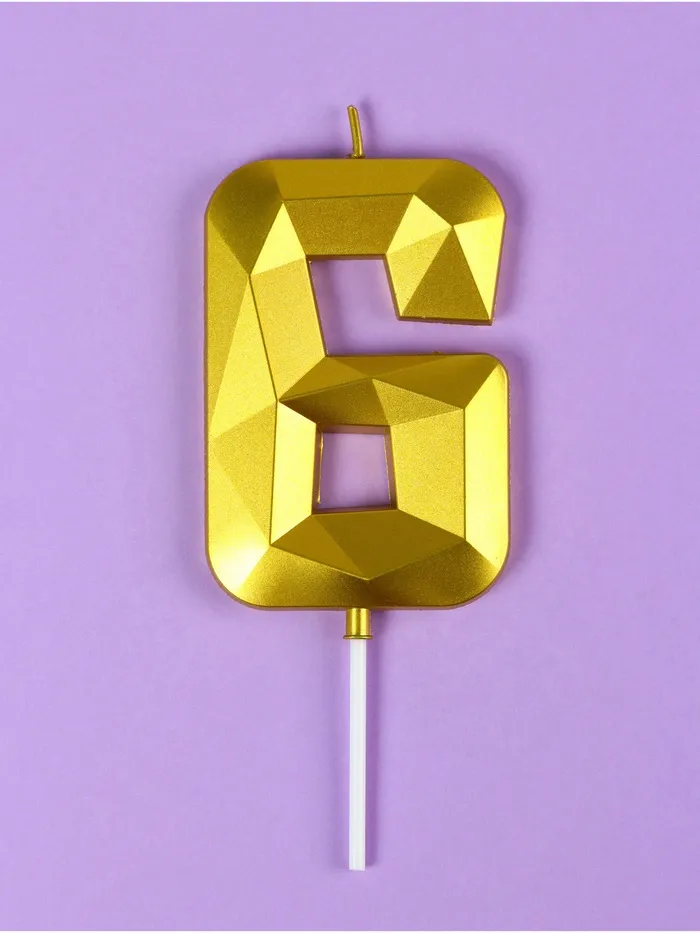 Свеча в торт на шпажке «Грань», цифра 6, золотая, 9 см, ГИГАНТ — Характеристики