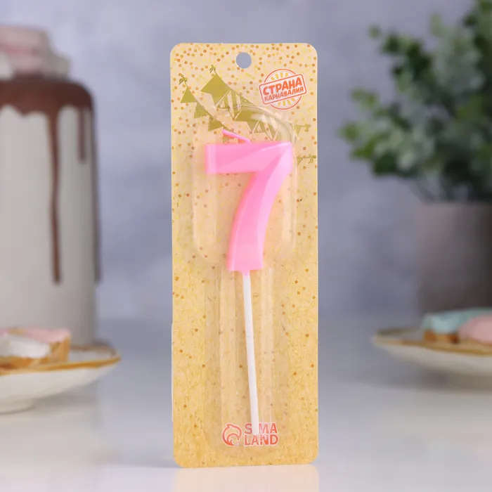 Свеча в торт на шпажке «Грань», цифра 7, 5 см, розовая — Характеристики