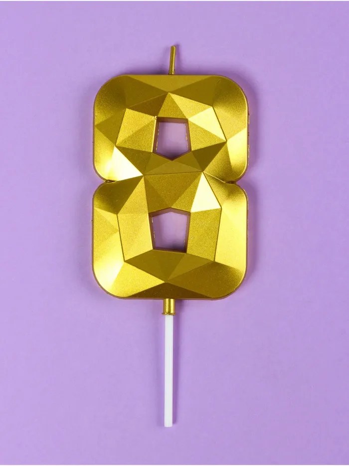 Свеча в торт на шпажке «Грань», цифра 8, золотая, 9 см, ГИГАНТ — Характеристики