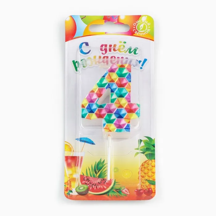 Свеча в торт на шпажке «Калейдоскоп», цифра 4, 7 см — Характеристики