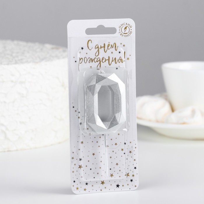 Свеча в торт на шпажке «Многогранник», цифра 0, 7 см, серебро — Характеристики