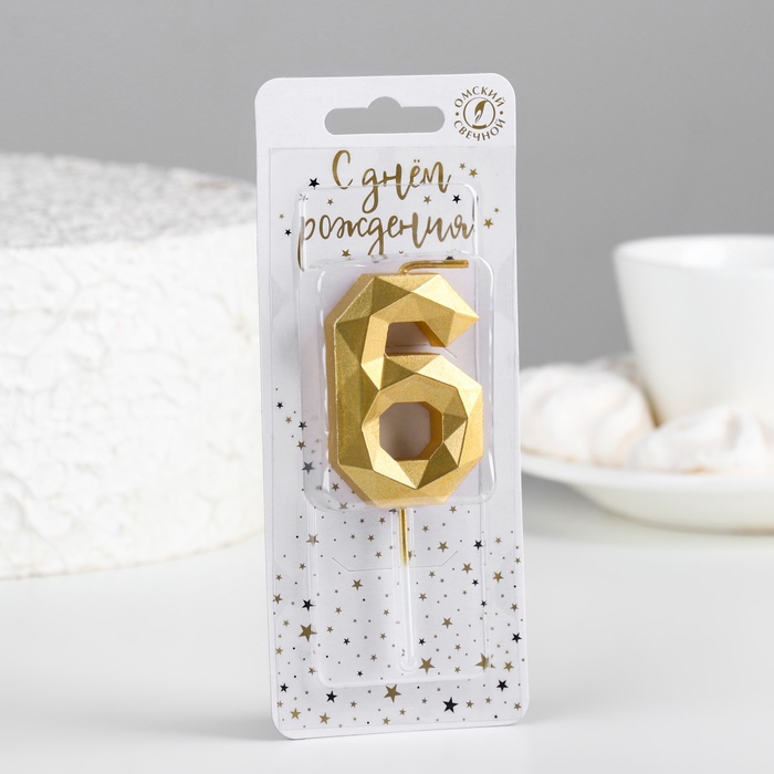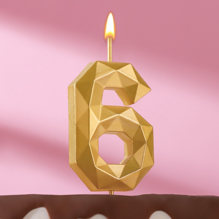 Свеча в торт на шпажке «Многогранник», цифра 6, 7 см, золото — Характеристики