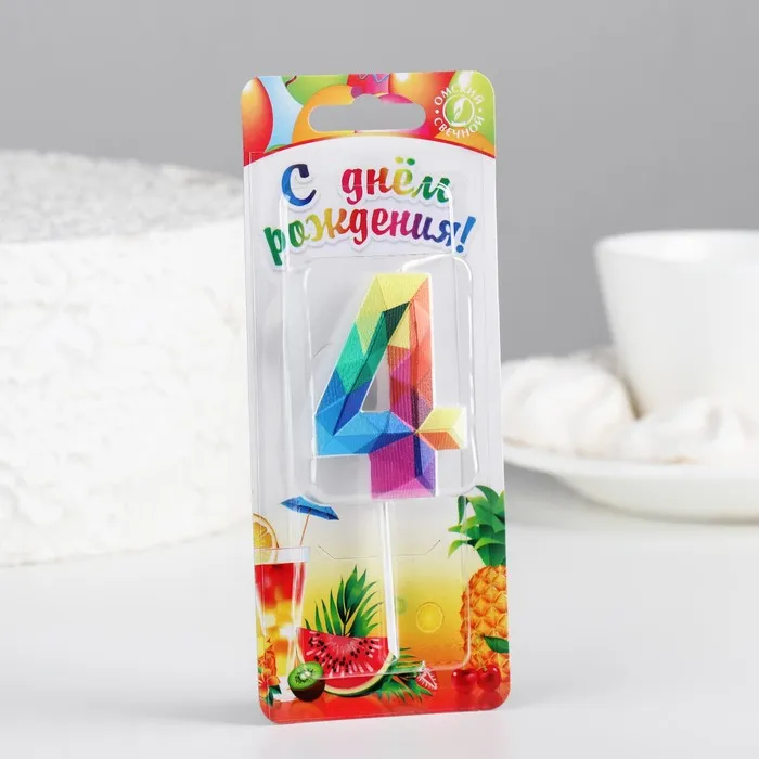Свеча в торт на шпажке «Разноцветные грани», цифра 4, 5.3 см — Характеристики
