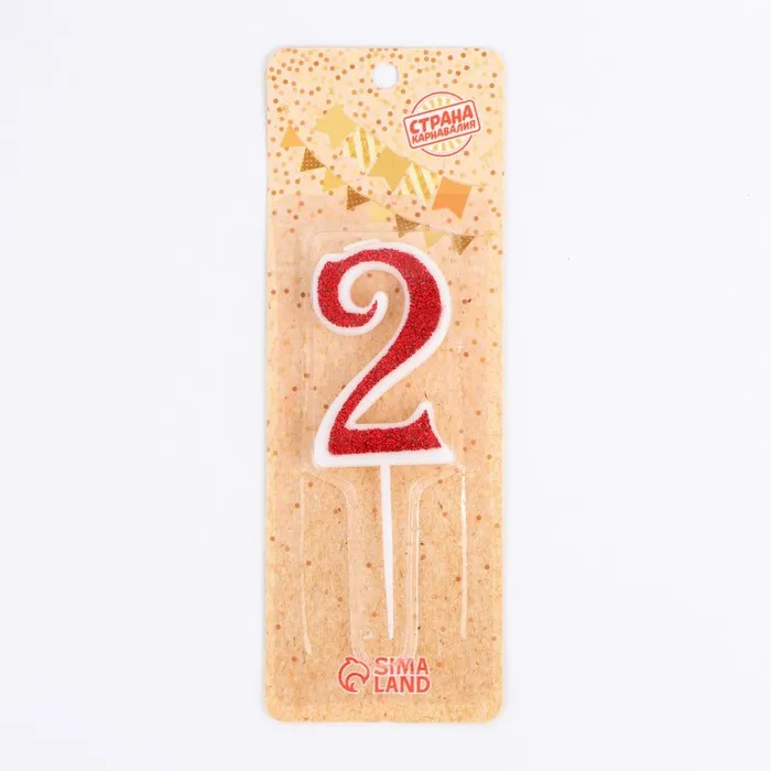 Свеча в торт на шпажке «Рубиновая коллекция», цифра 2, 5.2 см, рубиновая
