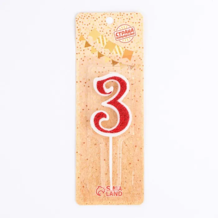 Свеча в торт на шпажке «Рубиновая коллекция», цифра 3, 5.2 см, рубиновая