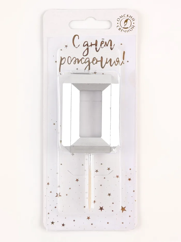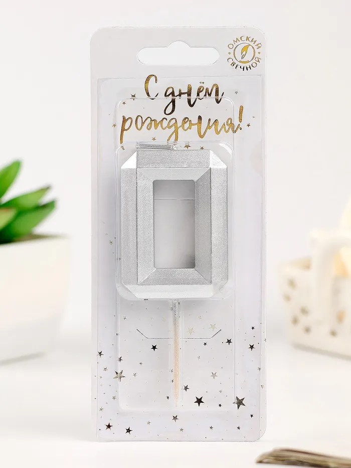 Свеча в торт на шпажке «Серебряные грани», цифра 0, серебряная — Характеристики