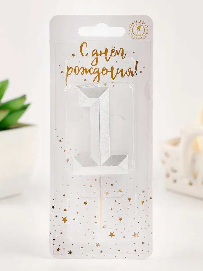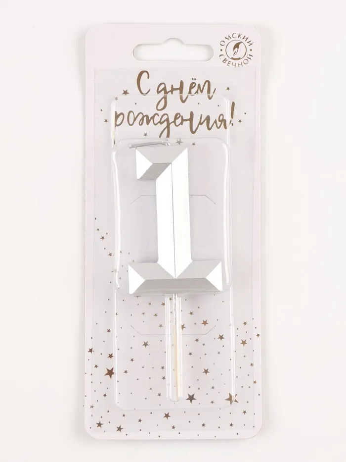 Свеча в торт на шпажке «Серебряные грани», цифра 1, серебряная — Характеристики