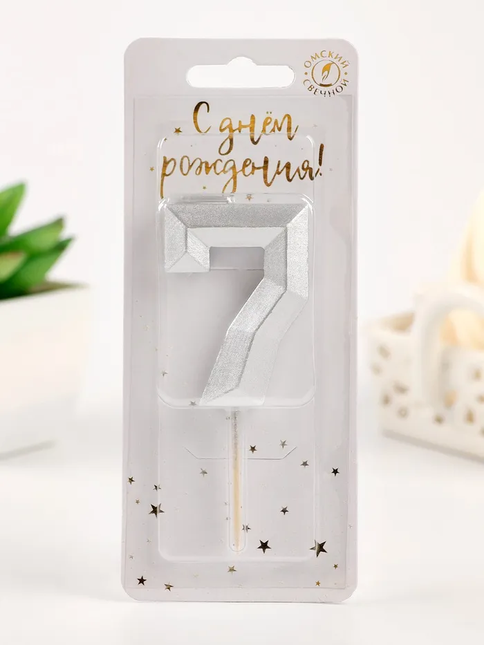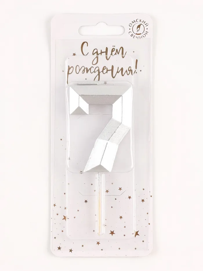 Свеча в торт на шпажке «Серебряные грани», цифра 7, серебряная — Характеристики