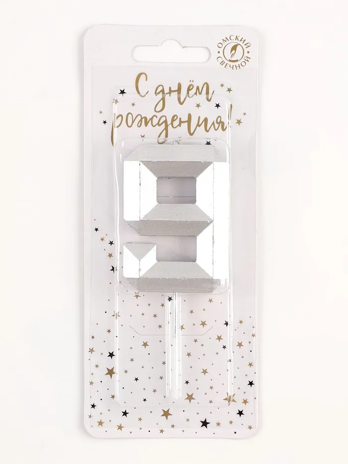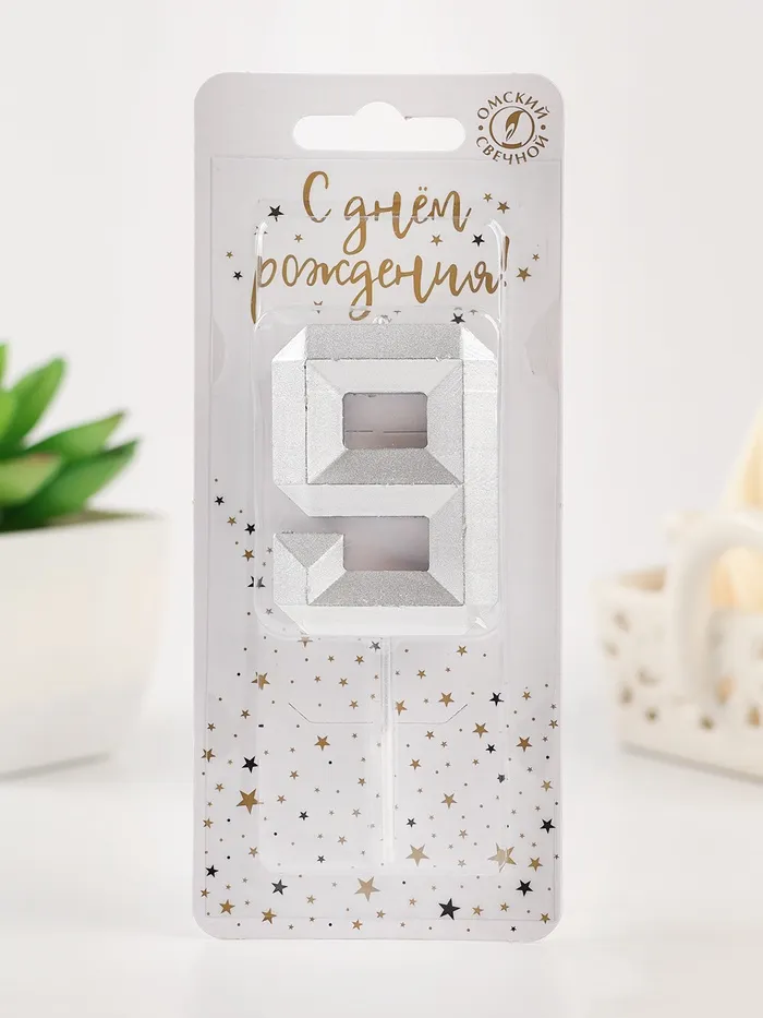 Свеча в торт на шпажке «Серебряные грани», цифра 9, серебряная — Характеристики