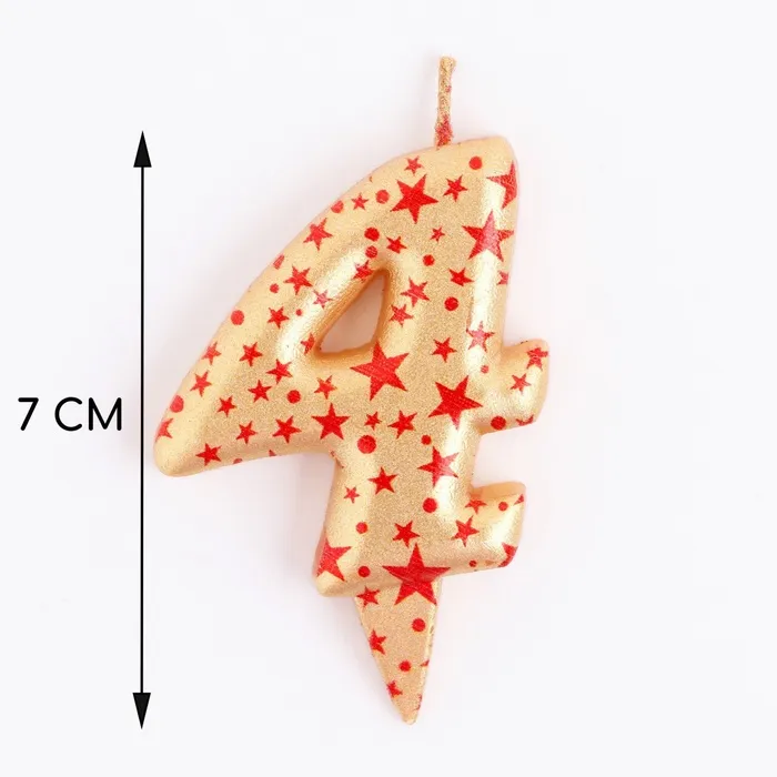 Свеча в торт «Саната», цифра 4, золотая с красными звездами, 5.5 см