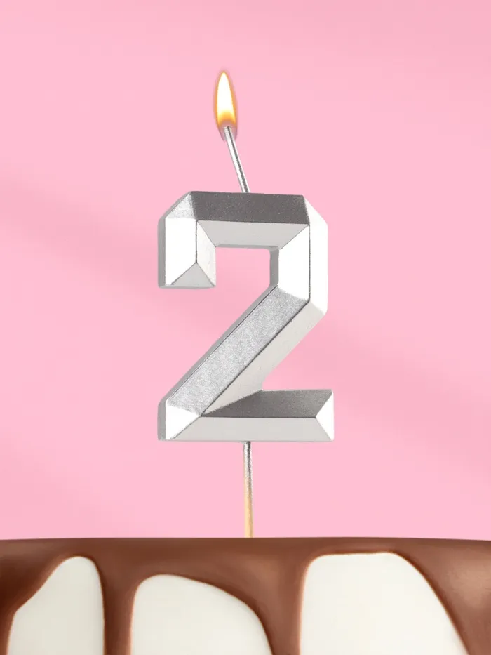 Свеча в торт на шпажке «Серебряные грани», цифра 2, серебряная