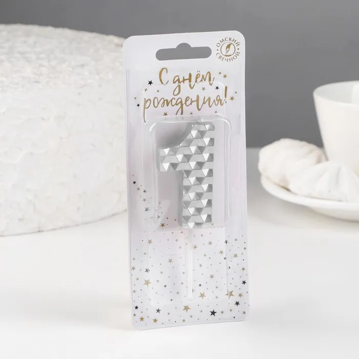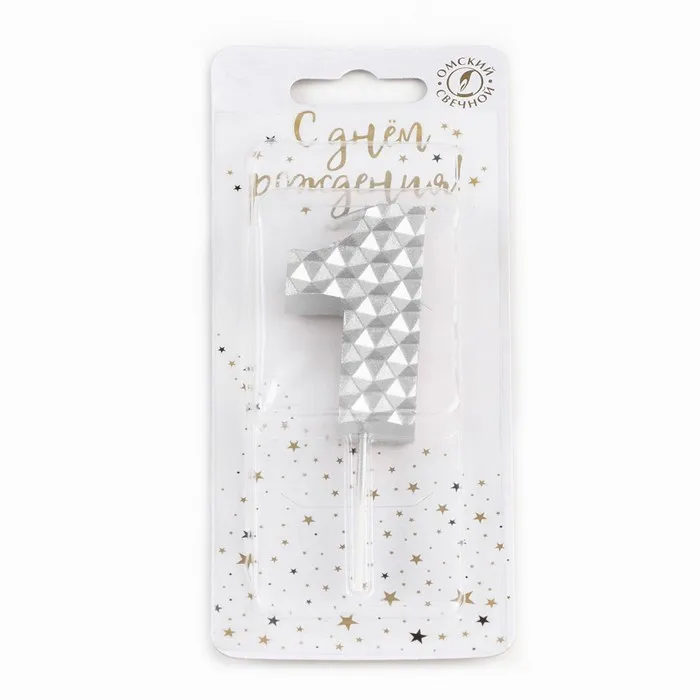 Свеча в торт на шпажке «Соты», цифра 1, 7 см, серебро — Характеристики