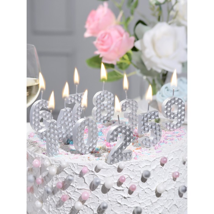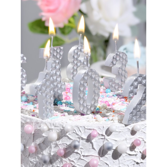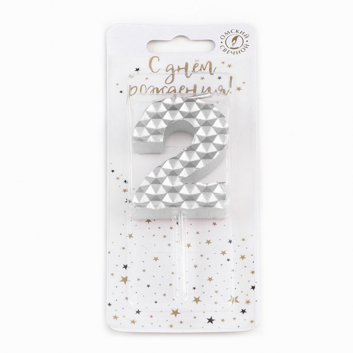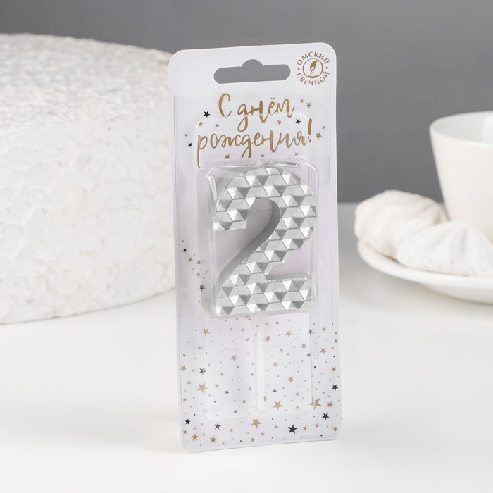 Свеча в торт на шпажке «Соты», цифра 2, 7 см, серебро — Характеристики