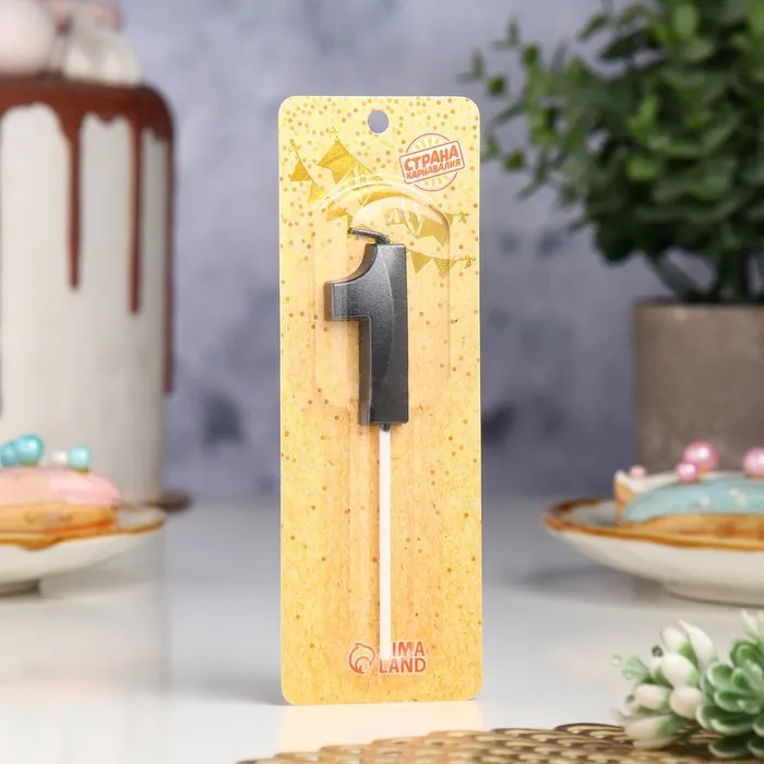 Свеча в торт на шпажке «Цифра 1», черная, 5 см — Характеристики