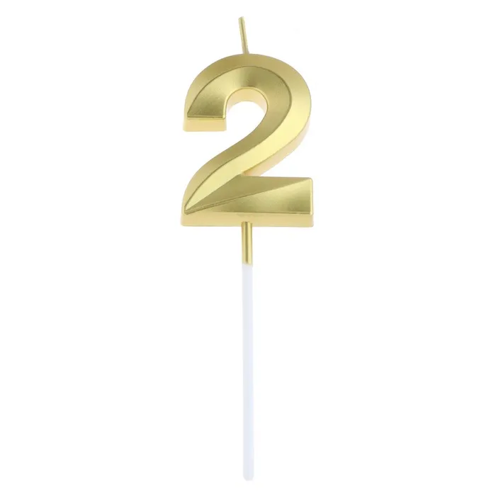 Свеча в торт на шпажке «Цифра 2», золотая, 5 см — Характеристики
