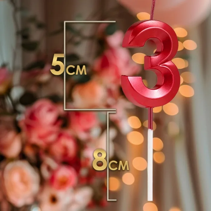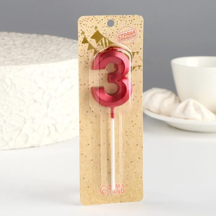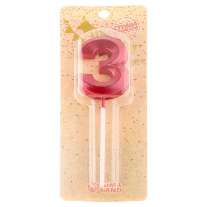 Свеча в торт на шпажке «Цифра 3», красная, 5 см — Характеристики