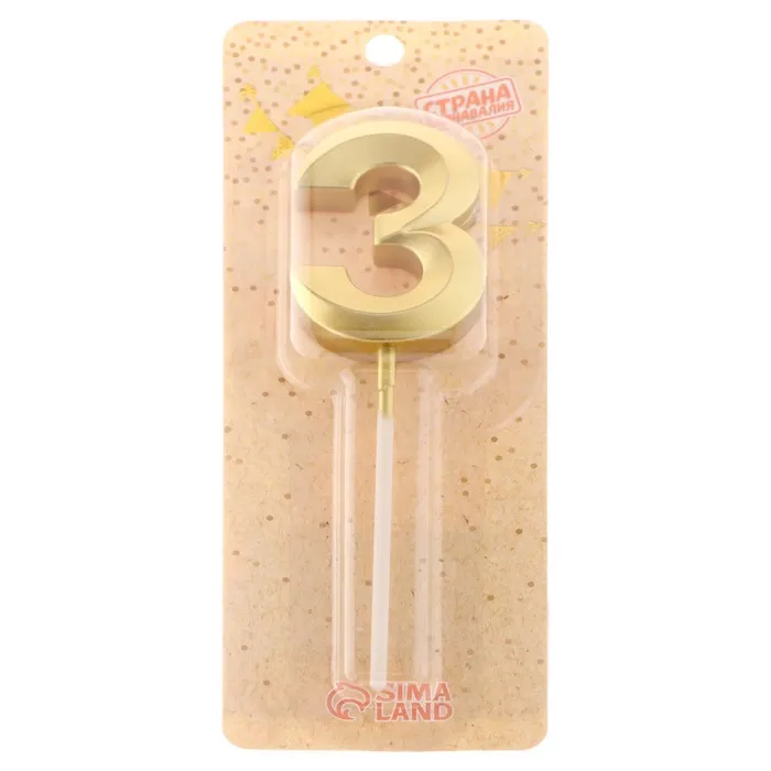 Свеча в торт на шпажке «Цифра 3», золотая, 5 см — Характеристики