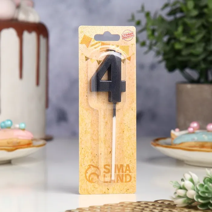 Свеча в торт на шпажке «Цифра 4», черная, 5 см — Характеристики