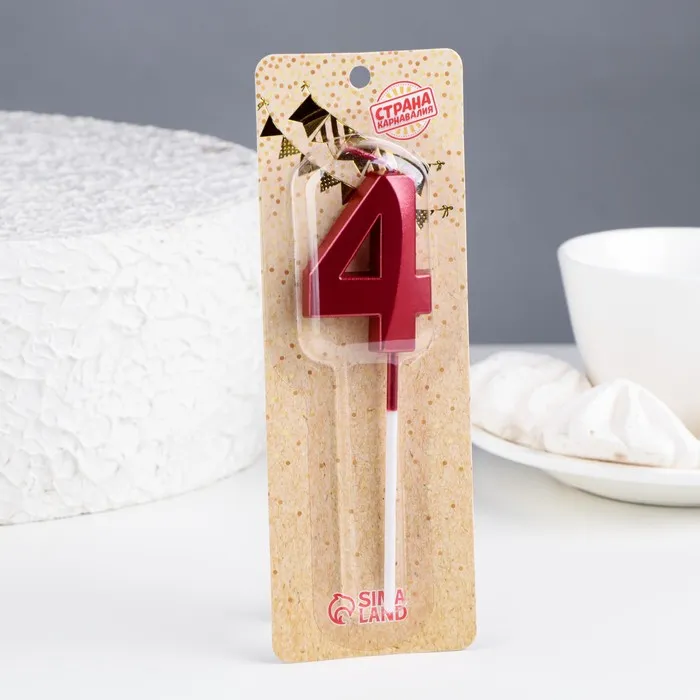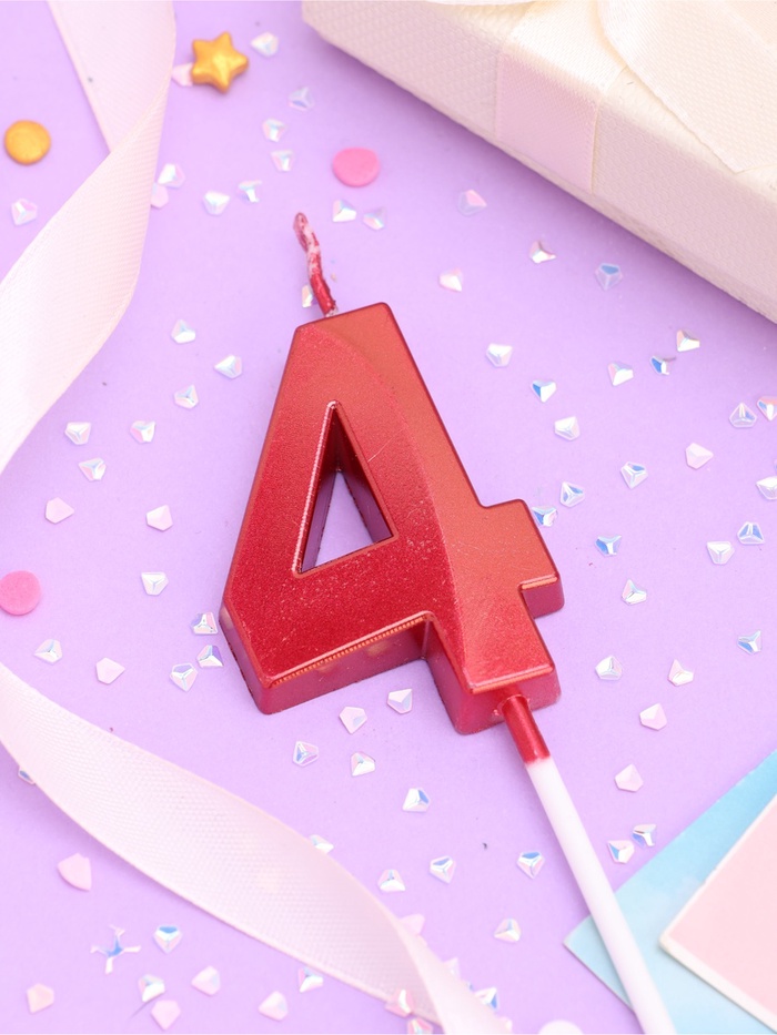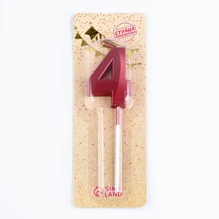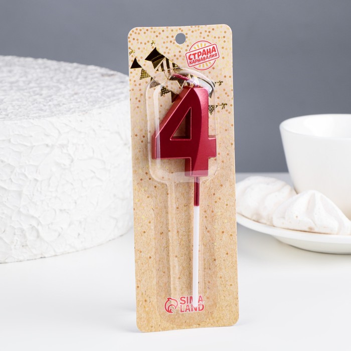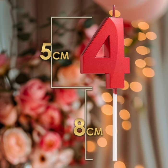 Свеча в торт на шпажке «Цифра 4», красная, 5 см — Характеристики
