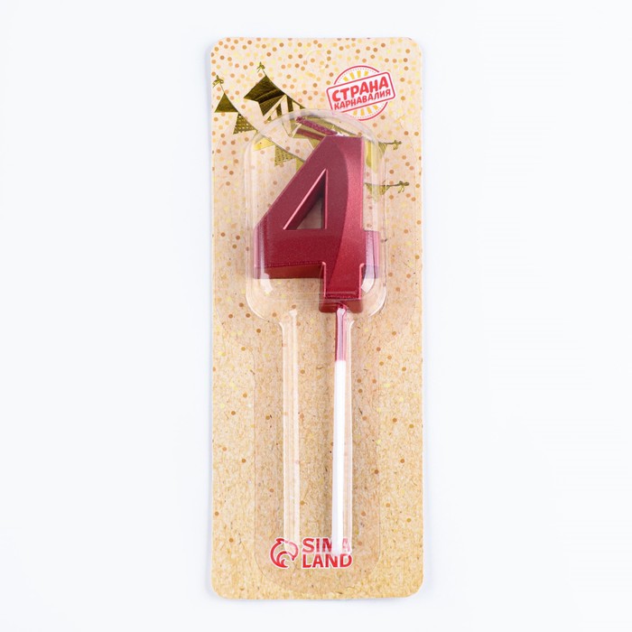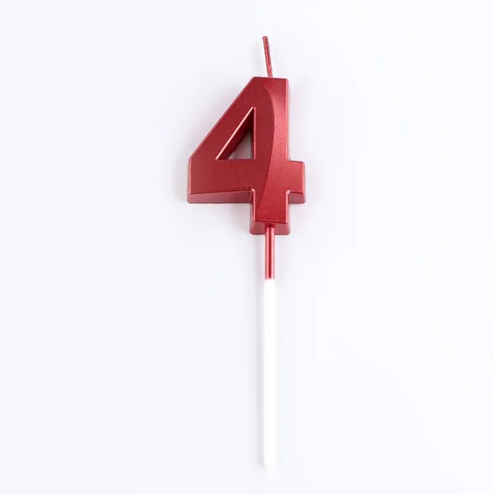 Свеча в торт на шпажке «Цифра 4», красная, 5 см
