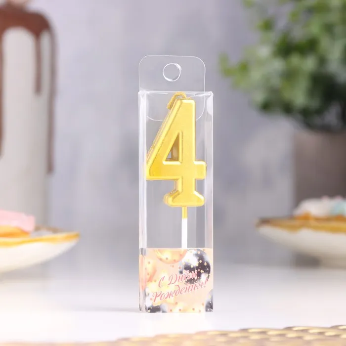 Свеча в торт на шпажке «Цифра 4», золотая, 4.5×2.5 см — Характеристики