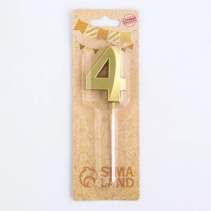 Свеча в торт на шпажке «Цифра 4», золотая, 5 см — Характеристики
